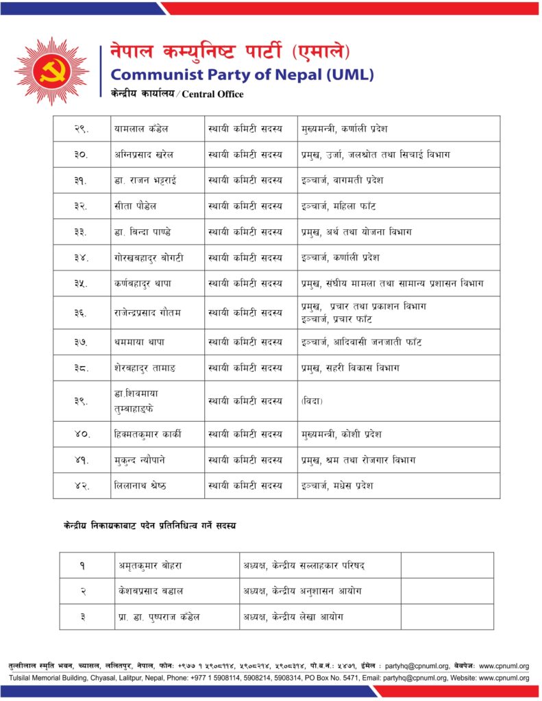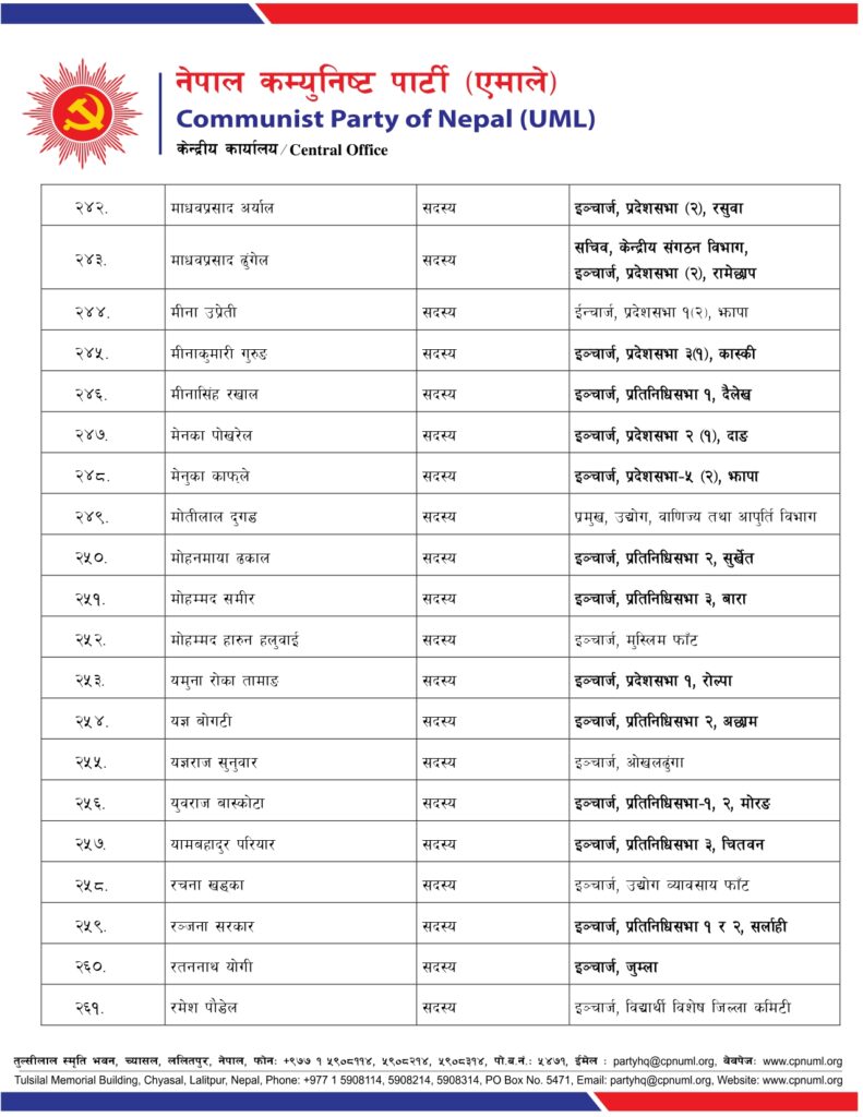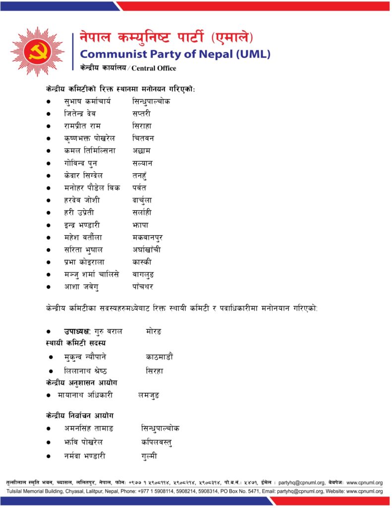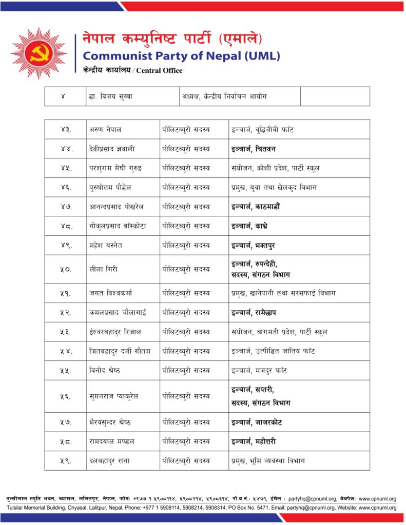 काठमाडौं । एमालेले नेताहरूको जिम्मेवारीहरूमा हेरफेर गरेको छ ।