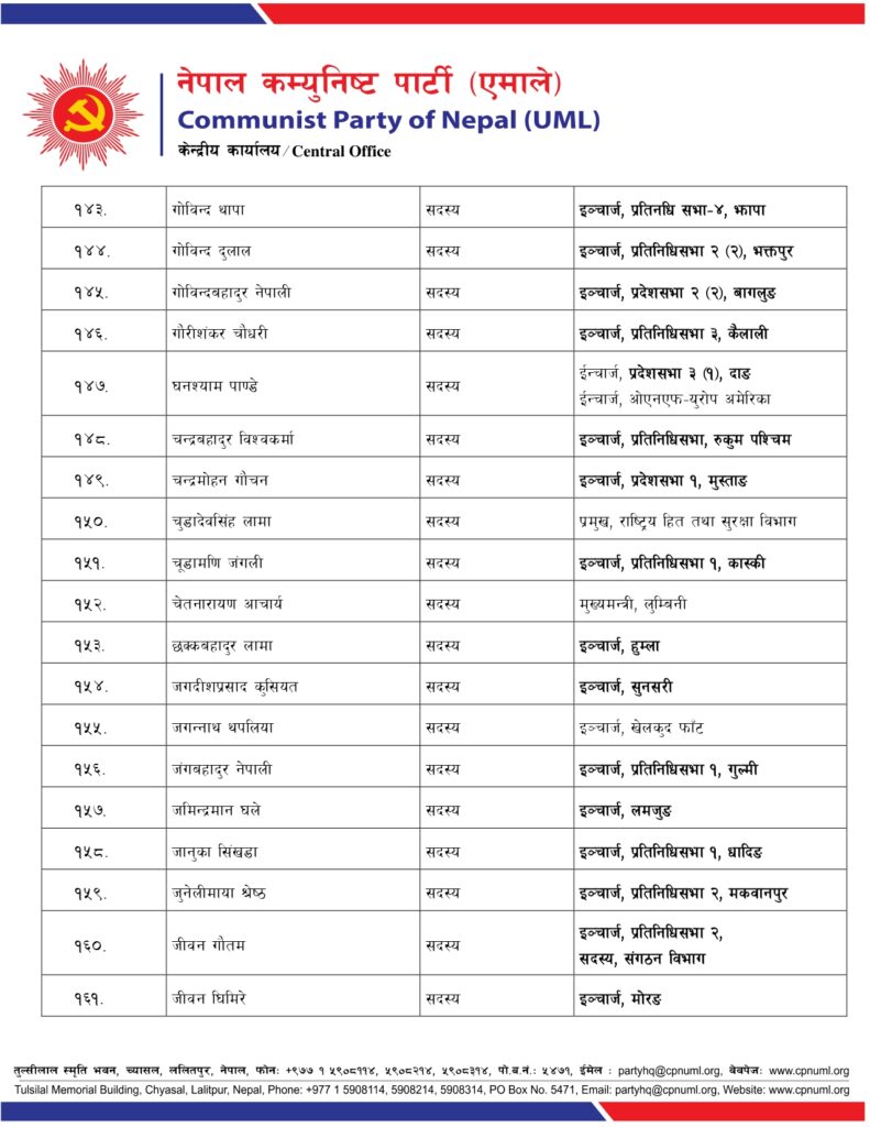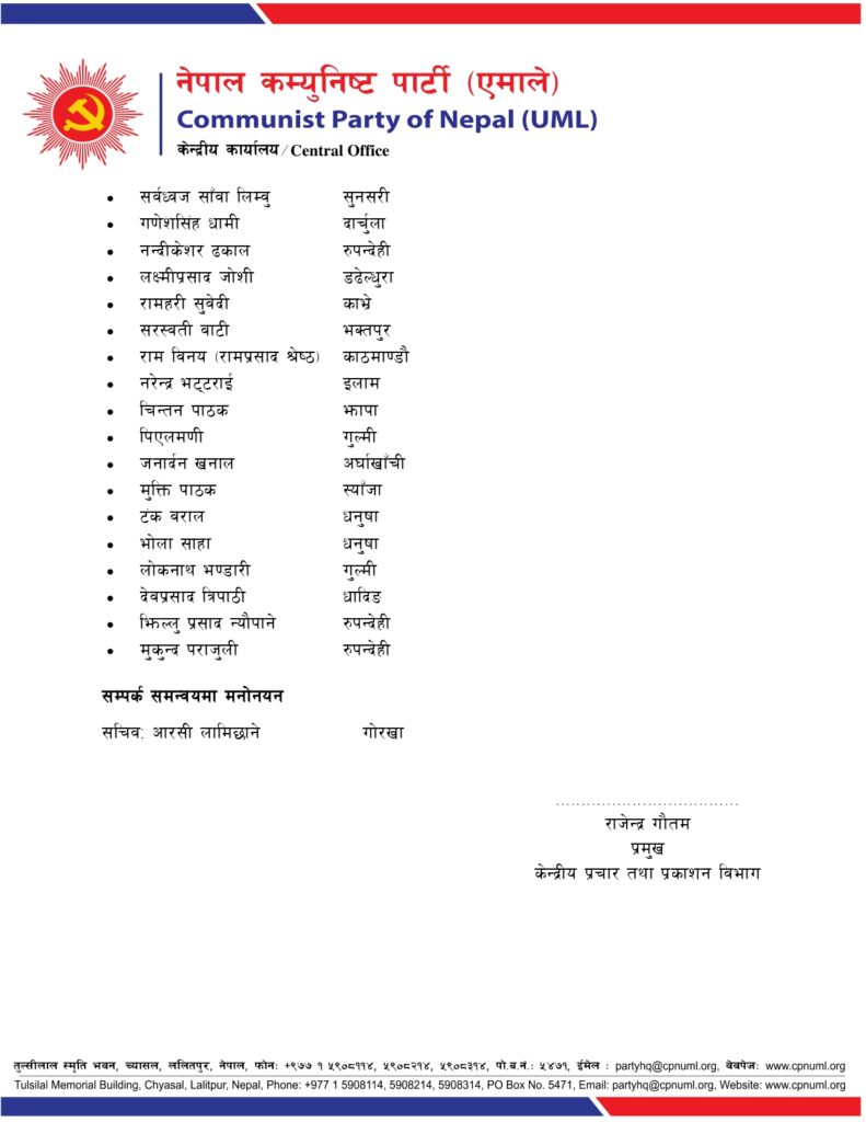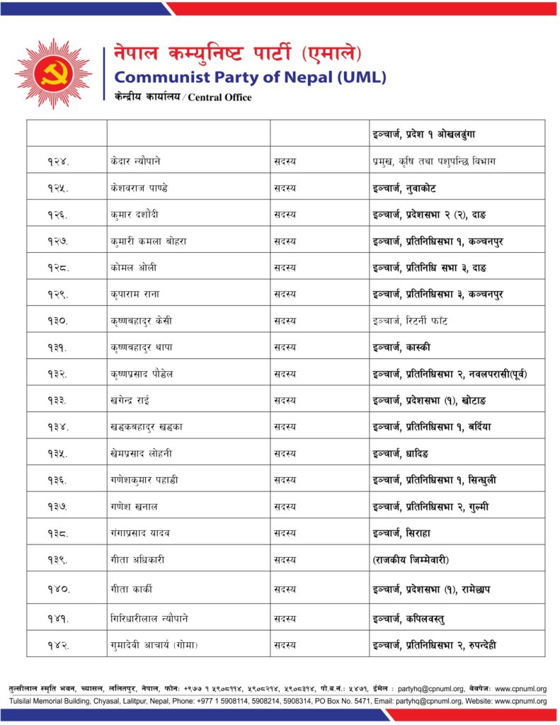एमालेले गोकर्ण, योगेश, छबिलाल र रघुवीरको ईञ्चार्ज पद खोस्यो, क–कसले पाए जिम्मेवारी ?