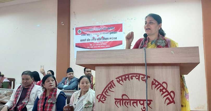 सोमबार ललितपुरमा आयोजित कार्यक्रममा उपाध्यायले राज्यको हरेक तहमा ५० प्रतिशत महिला सुनिश्चित गर्न समानुपातिक निर्वाचन प्रणालीबाट मात्रै सम्भव नहुने बताइन् ।