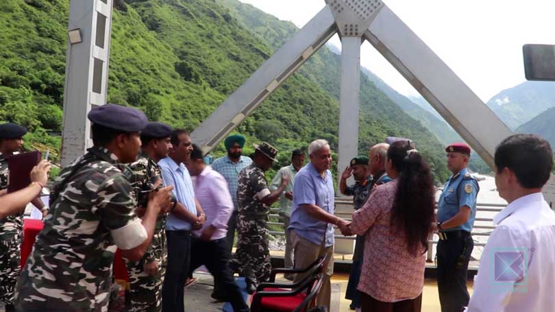 दार्चुलाको असिगाडामा निर्माणाधीन नेपाल–भारत जोड्ने पुलको राजदूतद्वारा निरीक्षण