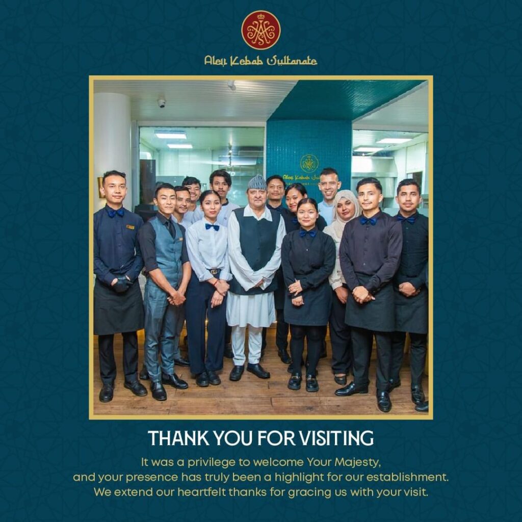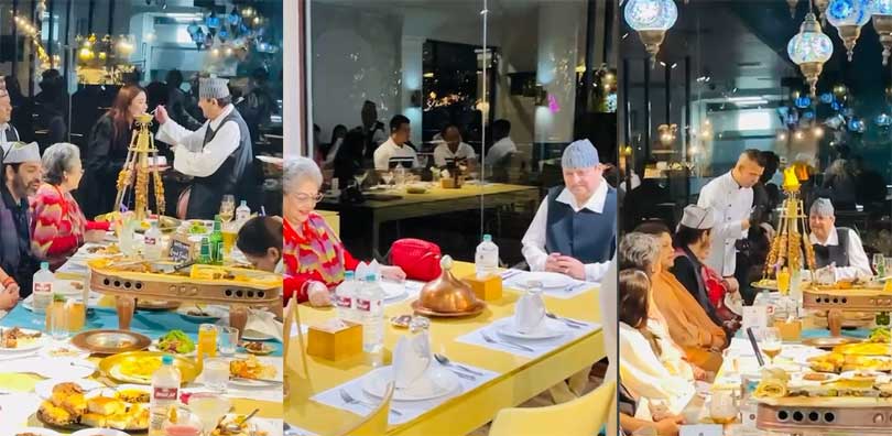 टर्किस रेस्टुरेन्ट अलेभ कबाब सल्टनेटमा भदौ १७ गते पूर्वराजा ज्ञानेन्द्र शाह, पूर्वरानी कोमल शाह, पूर्वयुवराज पारस शाहसहित परिवारका सदस्यहरूले भोजन लिएका छन् ।