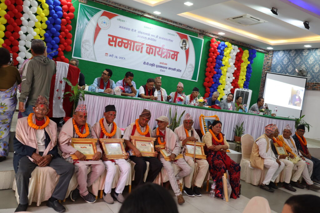 पोखरामा बुधबार १११औं वीपी जयन्तीको अवसरमा आयोजित समारोमा नेपाली कांग्रेसका नेता डा.शशांक कोइरालाले उनीहरूलाई सम्मान गरेका हुन् ।