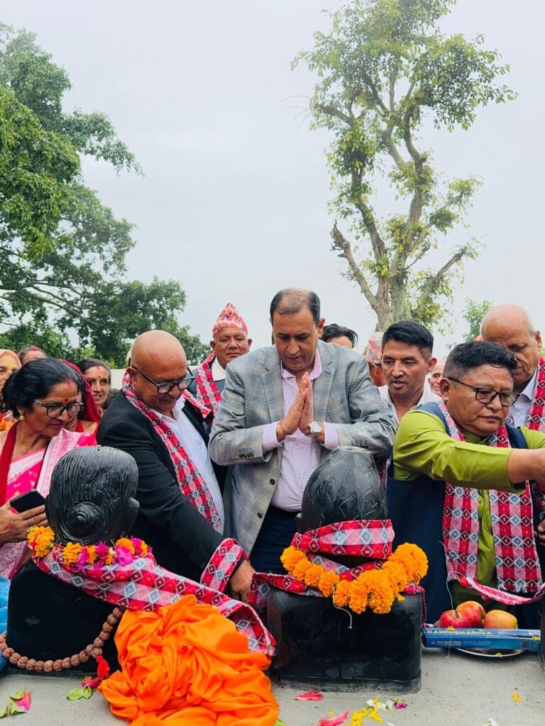 कांग्रेस नेता खतिवडाद्वारा ओखलढुङ्गामा स्व.टंकनाथ लुइँटेल दम्पत्तिको शालिक अनावरण