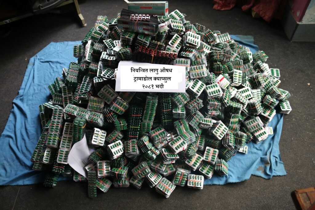 भदौ १९ गते सर्लाहीको हरिपुर नगरपालिका वडा नं. १ बस्ने वर्ष २२ को विपिनकुमार महतोलाई काठमाडौं कागेश्वरी मनोहरा नगरपालिका ६ बाबाचोकबाट ट्रामाडोल क्याप्सुल ५३ हजार ९ सय र ट्याब्लेट ८९२ सहित पक्राउ गरिएको प्रहरीले जनाएको छ ।