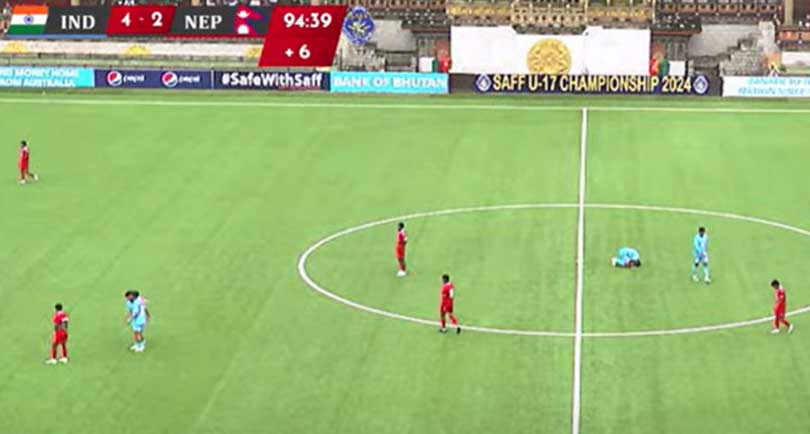 शनिबार दिउँसो चाङ्लिमिथाङ रंगशालामा भएको खेलमा प्रतियोगिताको सेमिफाइनलमा भारतले नेपाललाई ४ – २ गोल अन्तरले पराजित गरेको हो । आयोजक भुटानलाई घरेलु मैदानमा २–१ ले हराउँदै नेपाल सेमिफाइनलमा पुगेको थियो ।