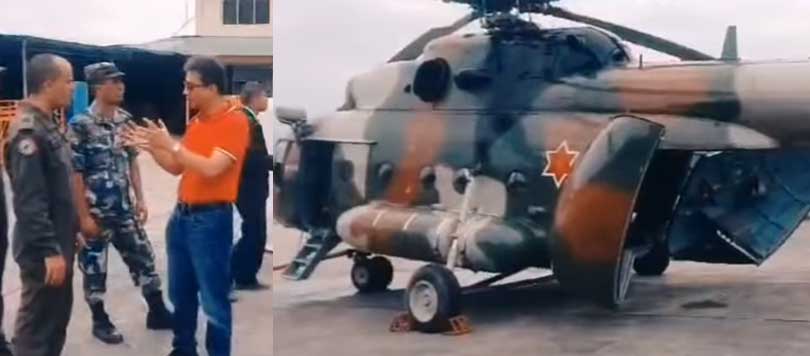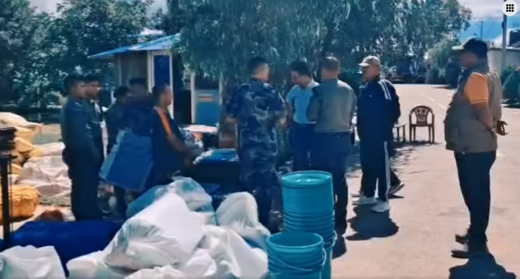 दक्षिणी ललितपुरमा कांग्रेस सांसद राणाले हेलिकप्टरमार्फत राहत सामग्री झारे