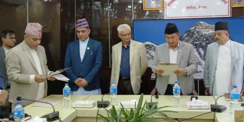 हेटौँडा । बागमती प्रदेशका मुख्यमन्त्री बहादुरसिंह लामासमक्ष मदन भण्डारी स्वास्थ्य विज्ञान प्रतिष्ठानको उपकुलपति डा.प्रदीप ज्ञवालीले शपथ लिएका छन् ।