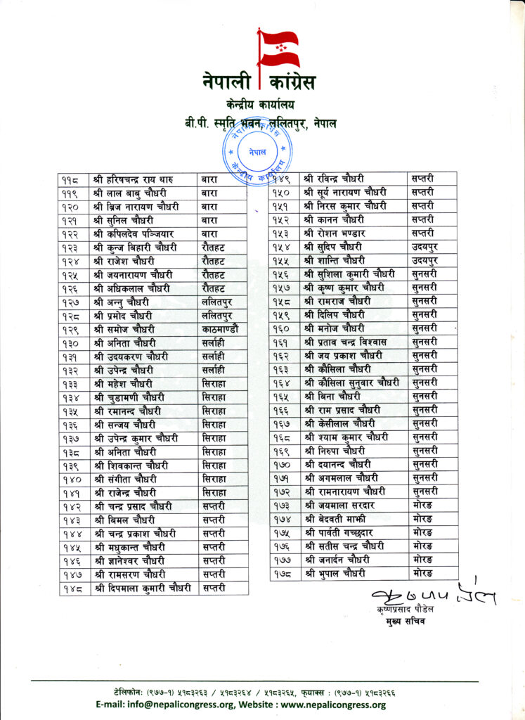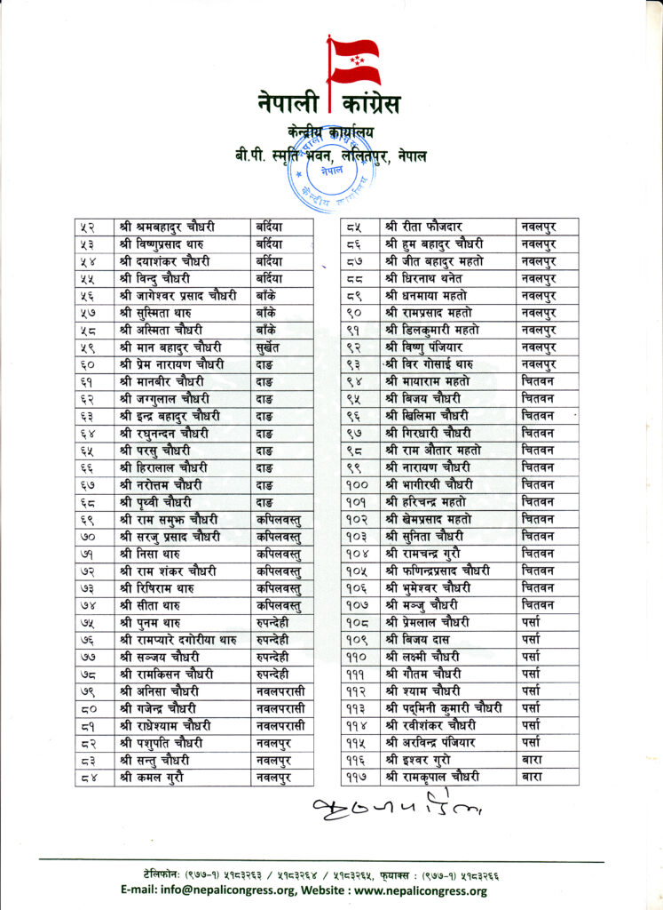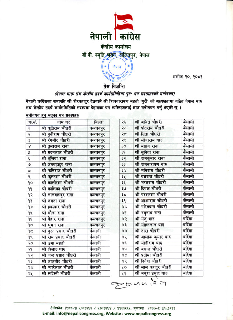 नेपाली कांग्रेसका सभापति शेरबहादुर देउवाले शिवनारायण महतो ‘गुरौ’को सिफारिसमा सदस्यहरू मनोनयन गरेका हुन् ।