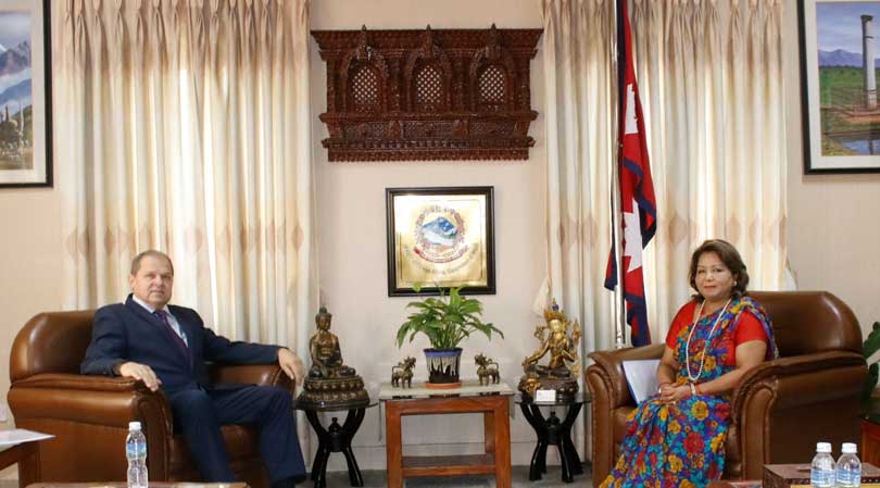 काठमाडौं । परराष्ट्रमन्त्री डा.आरजु राणा देउवासँग नेपालका लागि रुसका राजदूत एलेक्सेई ए नोभिकोभ भेटवार्ता गरेका छन् ।