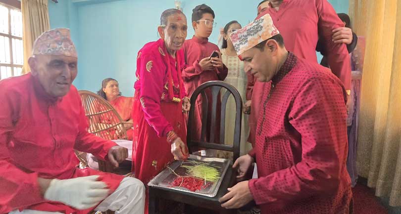 पिता र माताबाट सभापति खतिवडाद्वारा दशैँको टीका, जमरा ग्रहण