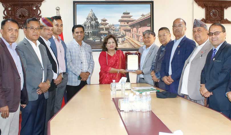 काठमाडौं । परराष्ट्रमन्त्री डा.आरजु राणा देउवासँग नेपाल निर्माण व्यवसायी महासंघका पदाधिकारीहरूले भेट गरेर आफ्ना समस्याहरूको बारेमा जानकारी गराएका छन् ।