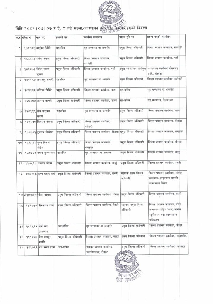 सीडीओहरूसहित २७ जनाको पदस्थापना र सरुवा