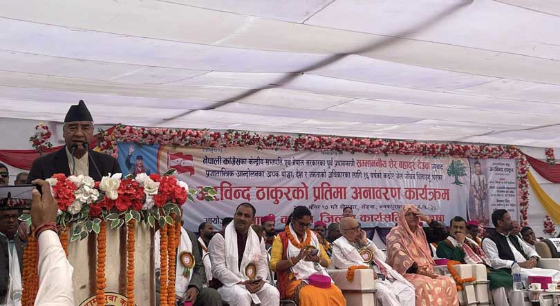 सोमबार धनुषाको जनकपुरधाम उपमहानगरपालिका–२५, लोहनामा कांग्रेसका नेता एवं राष्ट्रियसभाका पूर्वसदस्य स्वर्गीय अरविन्द ठाकुरको अर्धकदको शालिक अनावरण गर्दै देउवाले जनतालाई अझै धेरै अधिकार सम्पन्न बनाउनुपर्ने बताए ।