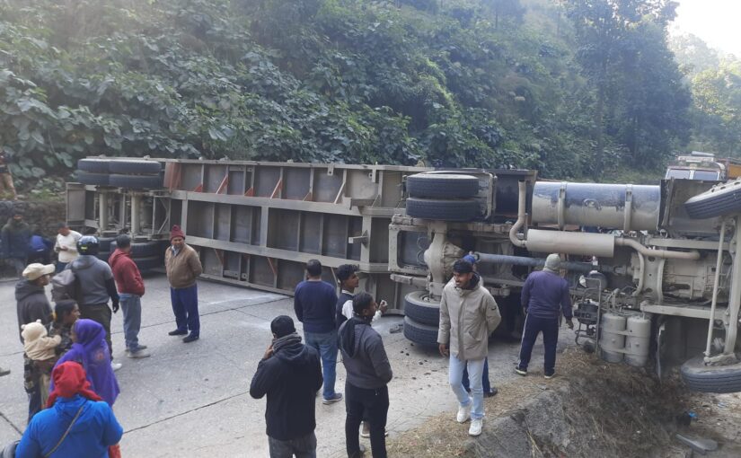मकवानपुरमा मोबिल बोकेको लोड लहरी दुर्घटना, पूर्वपश्चिम महेन्द्र राजमार्ग अवरुद्ध