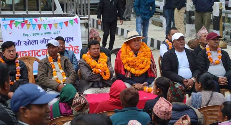 कांग्रेस नेता मोहन बस्नेतद्वारा दाबीखोलामा मोटरेवल पुलको उद्घाटन