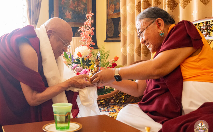 बुधबार लुम्बिनीस्थित १००० बुद्ध मन्दिरमा चोकी न्यामा रिन्पोछेको निमन्त्रणामा आफ्ना विद्यार्थीसँग अभिषेक पूजा तथा सरसफाई गरेको प्रेस नोटमा उल्लेख छ । चोकी न्यामा रिन्पोछेले परम पावनलाई प्रबुद्ध शरीर, वाणी र मनको प्रतिनिधित्व गर्ने प्रस्तावहरू प्रस्तुत गरेको जनाइएको छ ।