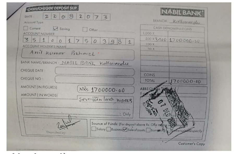 बौआलाल चौधरीको छोरीको नाम एमबीबीएसमा ननिस्किएपछि पैसा फिर्ता माग्दा उल्टै धम्की दिएर अनिलकुमारले ५० लाख ऋण लिएको लिखत बनाइ चौधरीलाई हस्ताक्षर गराएका थिए ।