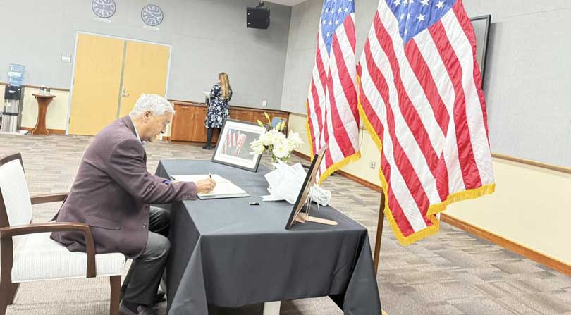 सभापति देउवाले राजदूतावासमा राखिएको शोकपुस्तिकामा समेत हस्ताक्षर गरेका छन् ।