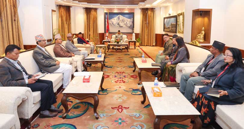 काठमाडौं । कानून, न्याय तथा संसदीय मामिलामन्त्री, मुख्यसचिव लगायतलाई साथमा राखेर प्रधानमन्त्री केपी ओलीले राष्ट्रपति रामचन्द्र पौडेलसँग भेट गरेका छन् ।