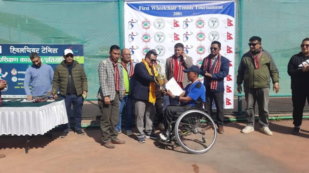नेपाल ह्विलचियर टेनिस संघको आयोजनामा भएको प्रतियोगिताको पुरुषमा प्रथम भएका रामबहादुर तामाङले १५ हजार, दोस्रो भएका सागर पाण्डेले १० हजार र तेस्रो भएका खुम पाण्डेले ५ हजार नगदसहित ट्रफी हात पारेका छन् ।
