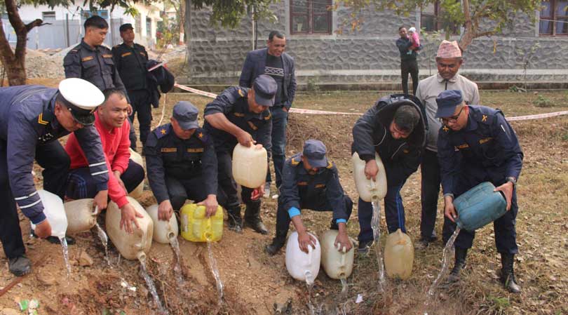 बसभित्र लावारिस अवस्थामा फेला घरेलु मदिरा रामपुर प्रहरीद्वारा नष्ट