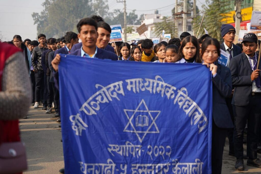 नेविसंघले आयोजना गरेको लागुऔषध दुर्व्यसनविरुद्धको बृहत पैदल यात्रा गरेको थियो । धनगढीको ट्राफिक चौराहादेखि रंगशाला चोक (पार्क मोड)सम्म पैदल यात्रा भएको थियो ।