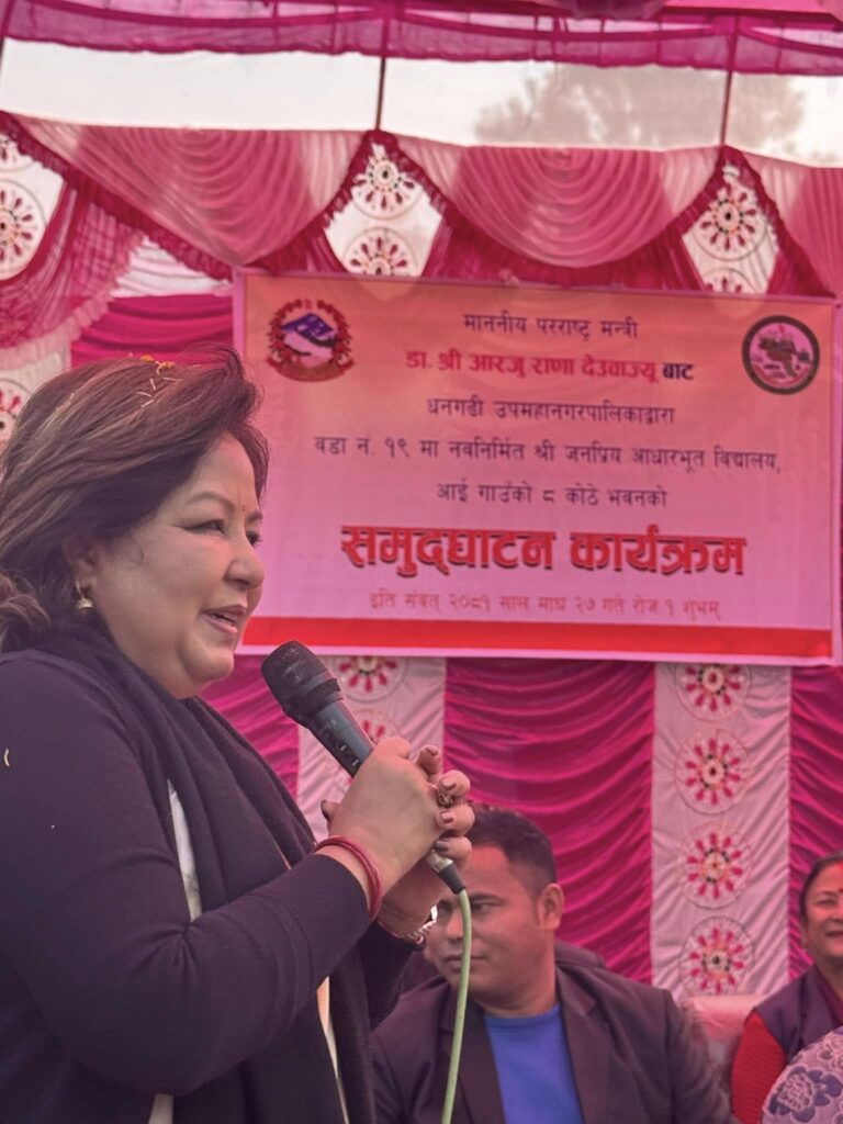 धनगढी । परराष्ट्रमन्त्री डा.आरजु राणाले कैलाली जिल्लामा आधा दर्जनभन्दा धेरै कार्यक्रममा सहभागी भएकी छिन् ।