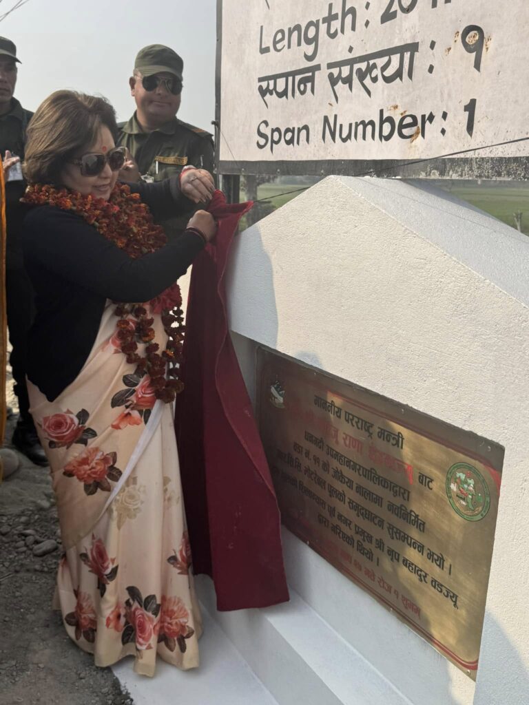 डा.राणाले धनगढी उप–महानगरपालिका वडा नं. ११ को जोकैया नालामा नवनिर्मित २० मिटर लामो आर.सी.सी. पुलको उद्घाटन गरेकी छिन् ।