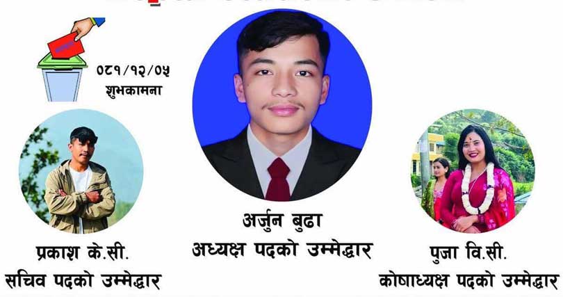 नेविसंघका अनुसार अर्जुन बुढाको नेतृत्वमा प्यानल बनाएर चैत ५ गतेको स्ववियु निर्वाचनमा प्रतिस्पर्धा गर्न लागिएको छ । अर्जुन बुढाको प्यानललाई मतदान गरेर विजयी बनाउन अपील गरिएको छ ।