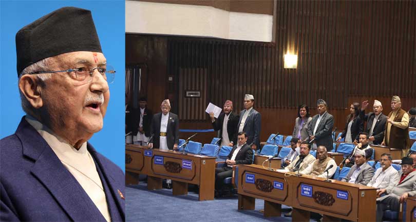 सोमबार बसेको संसदको बैठकमा सभामुखले समय दिएपछि प्रधानमन्त्री ओलीले सम्बोधन शुरु गरेका थिए । ओलीले तीनकुने हिंसा र त्यो हिंसाका नाइकेहरू लगायतका घटनाका विषयमा जानकारी गराइरहेका थिए । त्यही क्रममा राप्रपाका प्रमुख सचेतक ज्ञानबहादुर शाहीले उभिएर अबरोधको प्रयास गरेका थिए ।