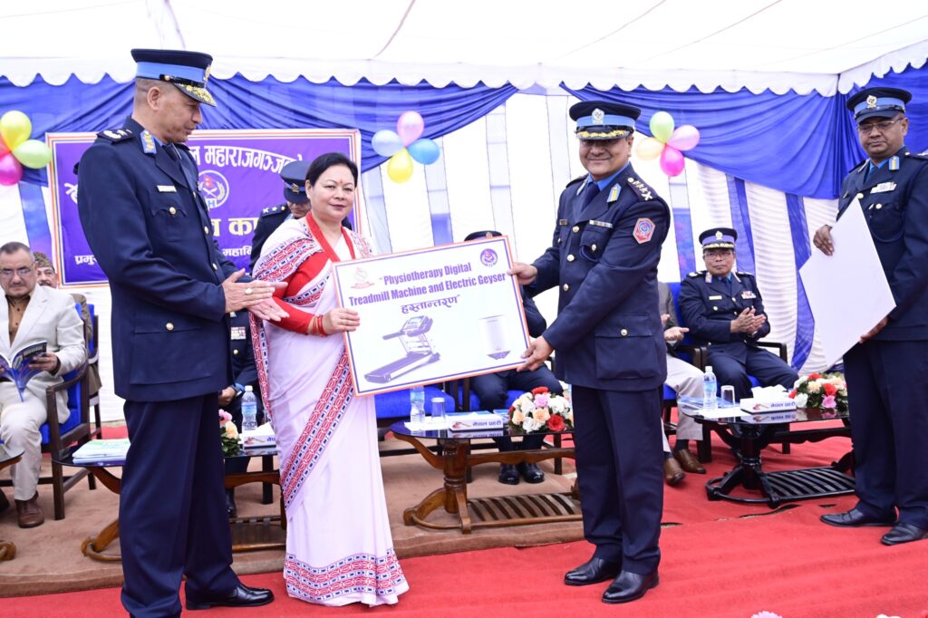 सो अवसरमा नेपाल प्रहरी श्रीमती संघको तर्फबाट संघकी अध्यक्ष श्रीमती रूपा थापाले हिटिङ गिजर र फिजियोथेरापी ट्रेड मिल अस्पतालका फिजियोथेरापी विभाग प्रमुख प्राविधिक प्रहरी वरिष्ठ उपरीक्षक डा. कुशल रानाभाटलाई हस्तान्तरण गरेकी छिन् ।