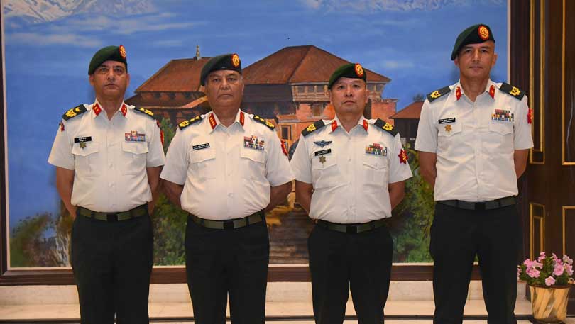काठमाडौं । नेपाली सेनाका प्रधान सेनापति अशोकराज सिग्देलले विभिन्न पदमा पदोन्नति भएका उच्च अधिकारीहरूलाई दर्ज्यानी चिन्ह प्रदान गरेका छन् ।