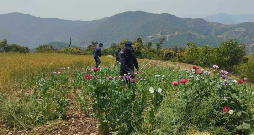 पाँचकटिया । प्रहरीले जाजरकोट जिल्लामा ठूलो परिमाणमा खेती गरिएको लागुऔषध अफिम नष्ट गरेको छ ।