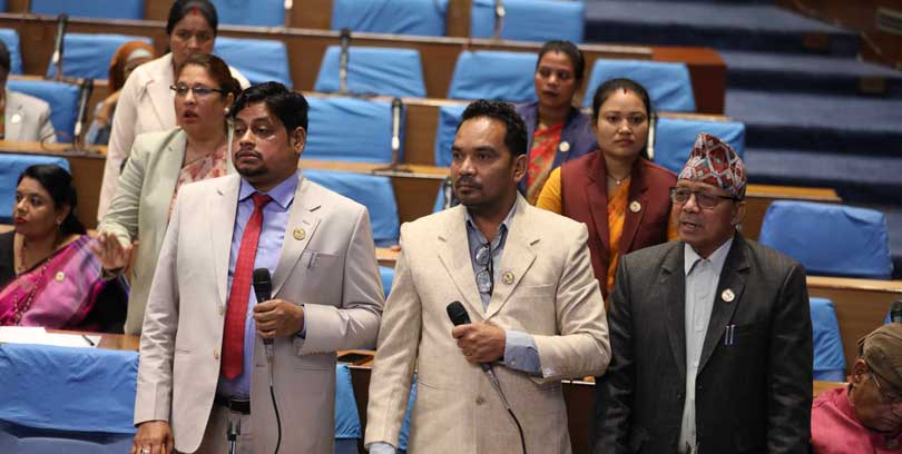 सोमबार बसेको प्रतिनिधि सभाको बैठकमा नागरिक उन्मुक्ति पार्टी र जनमत पार्टीका सांसदहरूले आ–आफ्नो सिटमा उभिएर सदन अबरोध गरेका थिए । उनीहरूको अबरोधपछि गृहमन्त्री रमेश लेखकले संसदमा जवाफ दिने भएका छन् ।