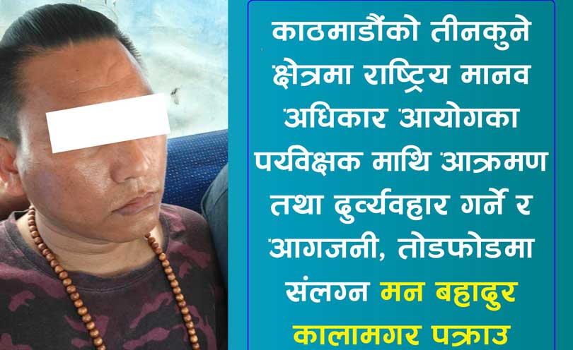 चैत १५ गतेका दिन भएको प्रदर्शनका क्रममा राष्ट्रिय मानव अधिकार आयोगका पर्यवेक्षकमाथि आक्रमण र दुर्व्यवहार गर्ने तथा सरकारी गाडी तोडफोड, आजगनी गर्ने कार्यमा संलग्न भएको आरोपमा मनबहादुरलाई पक्राउ गरिएको जिल्ला प्रहरी परिसर काठमाडौंले जनाएको छ ।