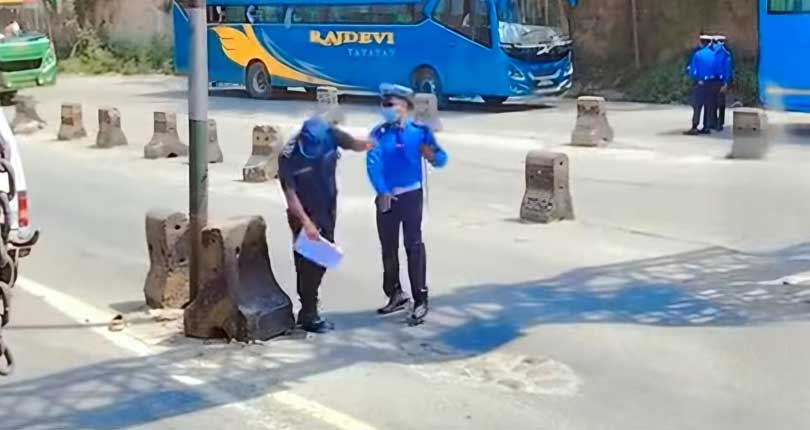 काठमाडौं । प्रहरी आचरण विपरितको कार्य गर्दै थानकोट ट्राफिक प्रहरीका प्रहरी निरीक्षक (इन्स्पेक्टर) जितेन्द्र साहले प्रहरीका सहायक हवल्दार मदन खड्कालाई सार्वजनिक स्थानमा कुटपिट गरेका छन् ।
