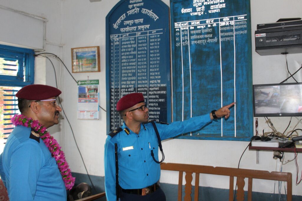 रामपुर । लुम्बिनी प्रदेश प्रहरी कार्यालय, दाङका प्रहरी प्रमुख एवम् प्रहरी नायव महानिरीक्षक (डीआईजी) राजेन्द्रप्रसाद भट्टले इलाका प्रहरी कार्यालय, रामपुर, पाल्पाको निरीक्षण भ्रमण गरेका छन् ।
