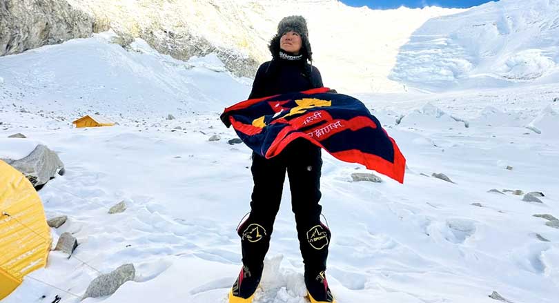 काठमाडौं । नेपाल प्रहरीकी प्रहरी सहायक निरीक्षक (असई) कुन्जाङ छोपेल शेर्पाले सगरमाथाको सफल आरोहण गरेकी छिन् ।