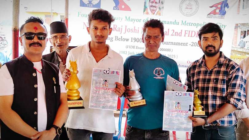 काठमाडौं । काठमाडौं महानगरपालिकाका पूर्व उपमेयर नवीन्द्रराज जोशीको स्मृतिमा आयोजित दोश्रो फिडे र्यापिड रेटिङ्ग बुद्धिचाल प्रतियोगिताको उपाधि नेपालका रिसोन थापाले जितेका छन् ।