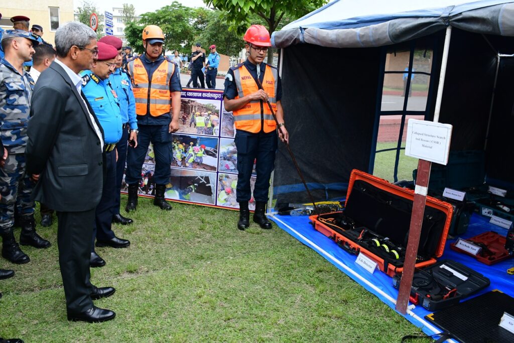 गृहमन्त्री लेखकले विपद् व्यवस्थापन सम्बन्धी डेमो प्रदर्शन एवम् विपद् उद्दार सामाग्रीहरूको अवलोकन गरेका छन् ।