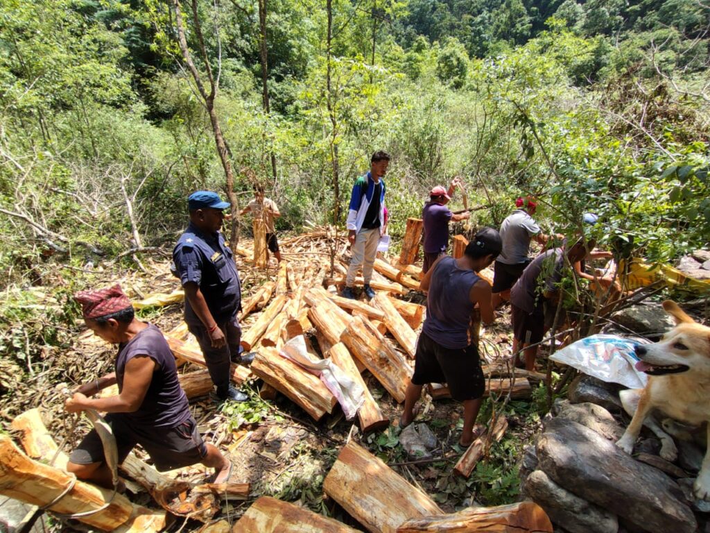 रामपुर प्रहरीद्वारा ठूलो परिमाणमा खयरको काठ बरामद
