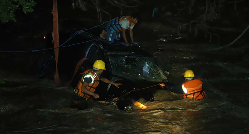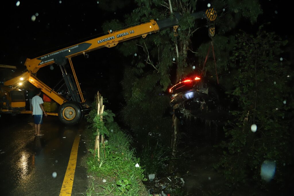 कारलाई क्रेनको सहायताले खोलाबाट बाहिर निकालेको छ । कारलाई प्रहरी प्रभाग नयाँ बसपार्कमा राखिएको छ ।