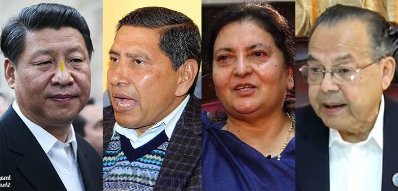 कांग्रेस र एमालेको सरकार ढाल्न चीनले झलनाथ खनाल, विद्यादेवी भण्डारी र नारायणकाजी श्रेष्ठलाई परिचालन गरेको भनेर काठमाडौंमा राजनीतिले तरंग ल्याइदिएको छ । श्रेष्ठले पनि भण्डारीलाई भेट गरेर कम्युनिस्टहरू मिल्नुपर्ने विषयमा कुराकानी भएको स्वीकार गरिसकेका छन् । यी तीन जना नेताहरू चीन निकट मानिन्छन् । चीनकै दवाव र सल्लाहमा पूर्वराष्ट्रपतिभण्डारी एमालेको राजनीतिमा फर्किएकी छिन् ।