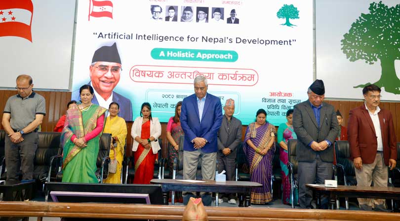‘नेपालको विकासका लागि कृत्रिम बुद्धिमत्ता : एक समग्र दृष्टिकोण’ शीर्षकसहितको एक दिवसीय अन्तरक्रिया कार्यक्रममा एआईको सदुपयोग, सम्भाव्यता, नीति निर्माण र उत्तरदायी नेतृत्वबारे गहन विमर्श गरिएको छ । कार्यक्रमको उद्घाटन नै एआईको प्रयोगमार्फत् गरियो । कांग्रेस सभापति शेरबहादुर देउवाले मोवाइलमा एआई फङ्सन क्लिक गरेर बत्तीबाली कार्यक्रमको औपचारिक शुभारम्भ गरेका छन् ।