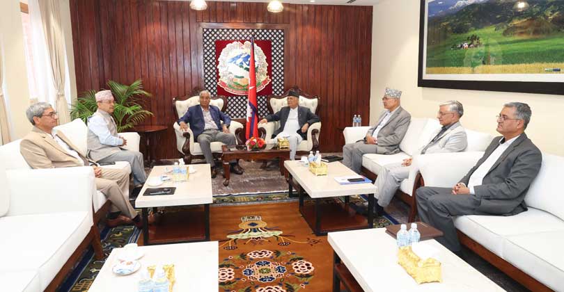 प्रधानमन्त्री ओली र सभापति देउवासहितका एमाले–कांग्रेसका नेताहरूबीच छलफल