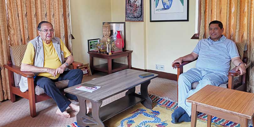 काठमाडौं । नेकपा (एकीकृत समाजवादी)का नेता झलनाथ खनाल र नेकपा (माओवादी केन्द्र)का वरिष्ठ उपाध्यक्ष नारायणकाजी श्रेष्ठबीच भेटवार्ता भएको छ ।