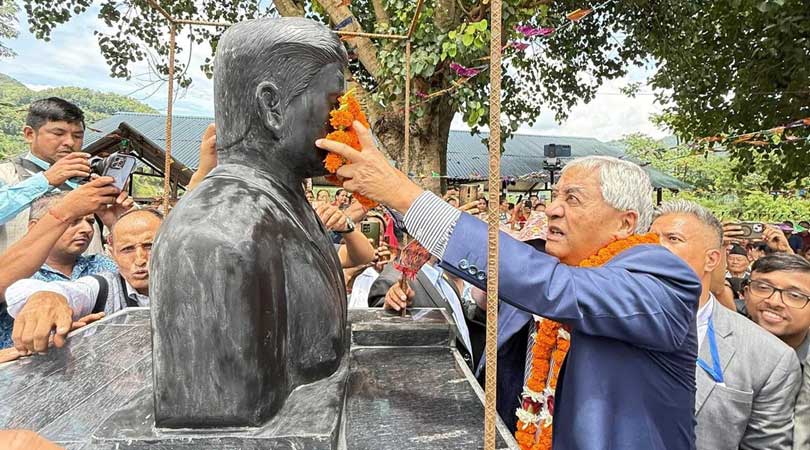 माओवादीले हत्या गरेका शहीद खनालको सालिकको सभापति देउवाद्वारा अनावरण