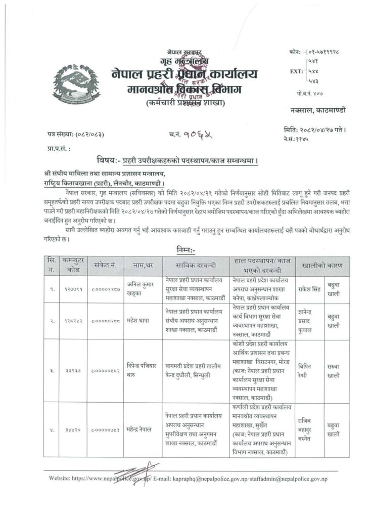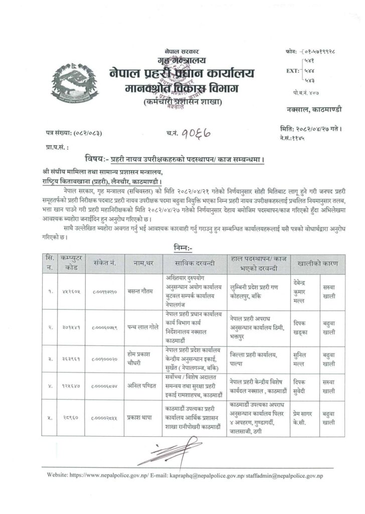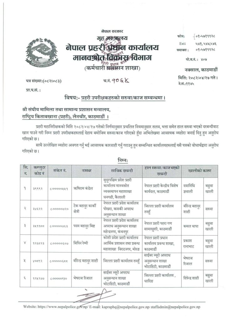 डीएसपी र एसपीहरूको सरुवा तथा काज