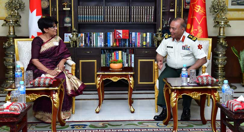 काठमाडौं । नेपाली सेनाका प्रधान सेनापति अशोकराज सिग्देल र भारतीय नेश्नल डिफेन्स कलेजकी अतिरिक्त सचिव (आईआरपीएस) रेखा यादवबीच भेटवार्ता भएको छ ।