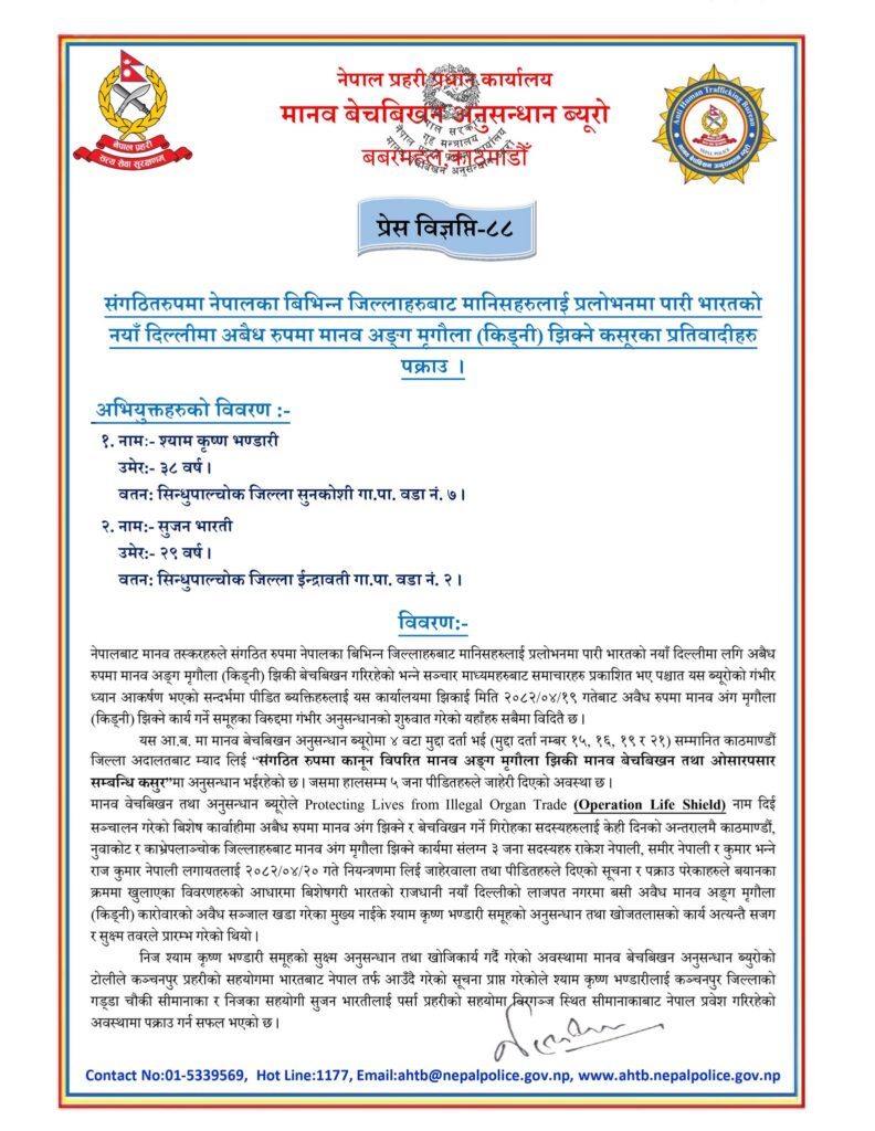 प्रहरीले भण्डारीलाई कञ्चनपुर तथा भारतीलाई वीरगञ्जमा पक्राउ गरिएको भनेर सार्वजनिक गरेको छ । सो गिरोहविरुद्ध पाँचजनाले प्रहरीमा जाहेरी दिइसकेका छन् ।